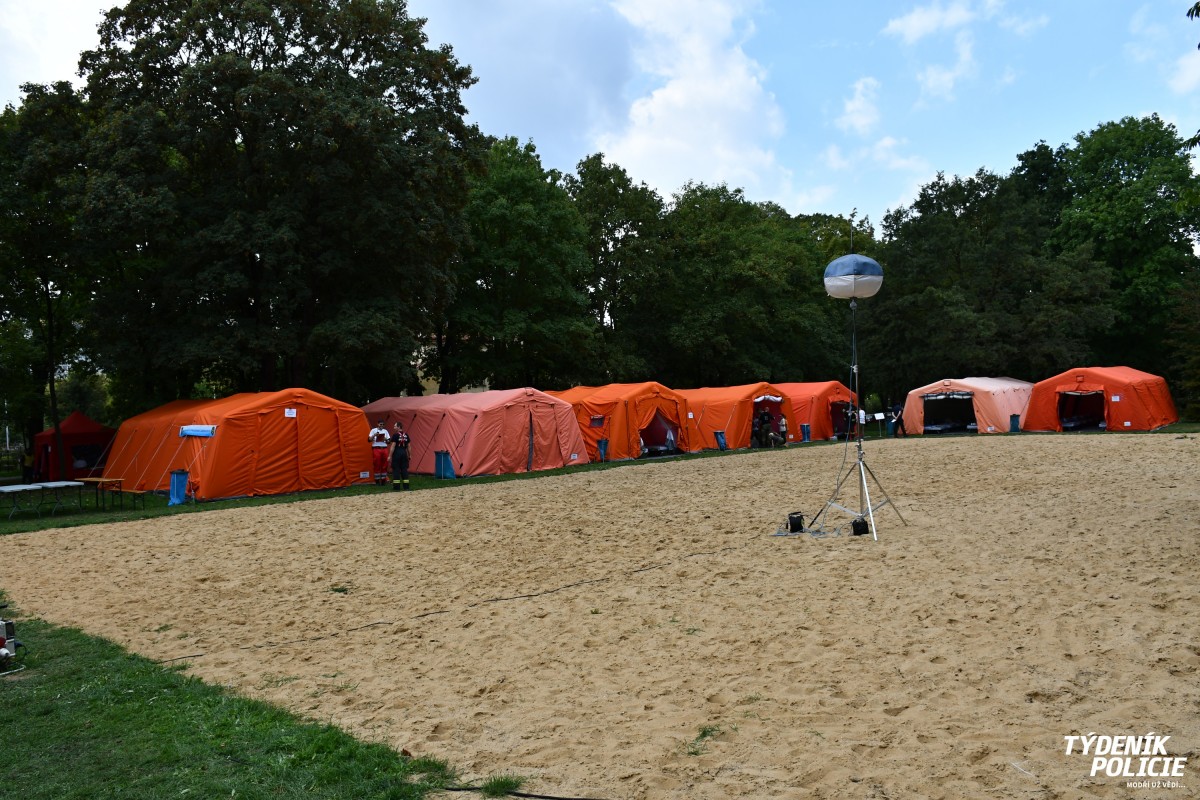 A jaký že byl vlastně námět cvičení? Hráz Hostivařské přehrady je poškozena a hrozí její protržení. Lidé z okolí přehrady museli být evakuováni. Všichni byli přemístěni do této „základny“, která byla provizorně postavena. Jsou zde stany na přespání, stany s jídelnou, výdejna jídla, nechybí sociální zařízení, či stany s psychologickou pomocí. Hasiči jsou dokonce připraveni i s řadou nabíječek pro různé typy mobilních telefonů a vytvořili také WiFi hotspot, aby se evakuovaní mohli prostřednictvím internetu informovat o aktuální situaci ve městě. Stejně tak jim byly informace podávány ze strany hasičů a dalších složek IZS.