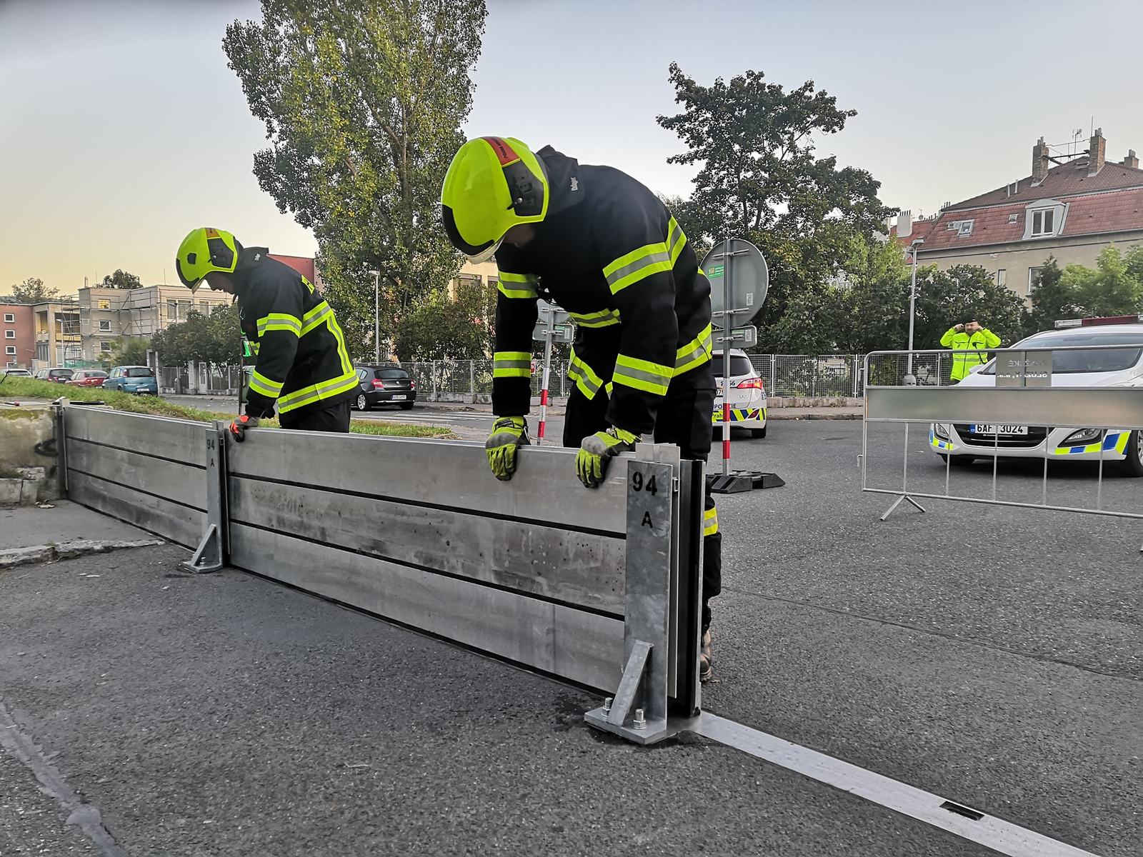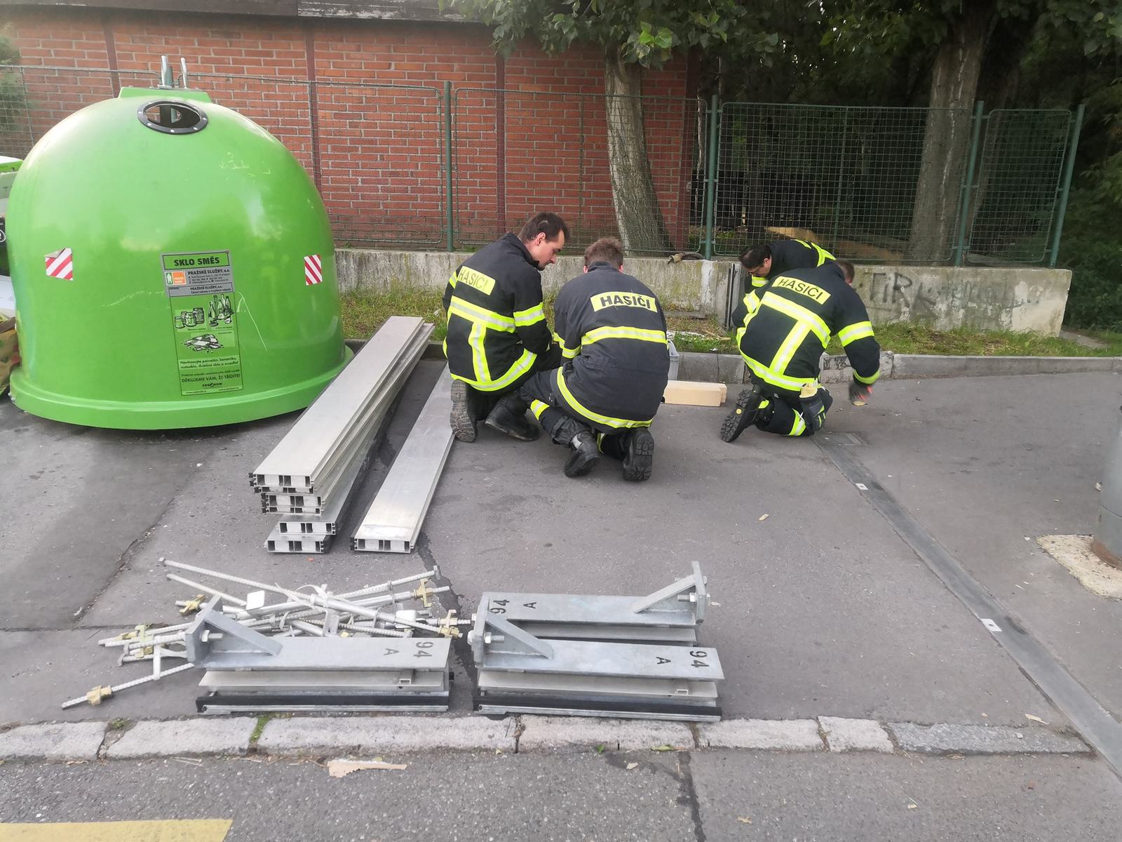 Jednotka dnes cvičí společně s jinými sbory stavbu protipovodňových zábran na cvičení Voda 2019.