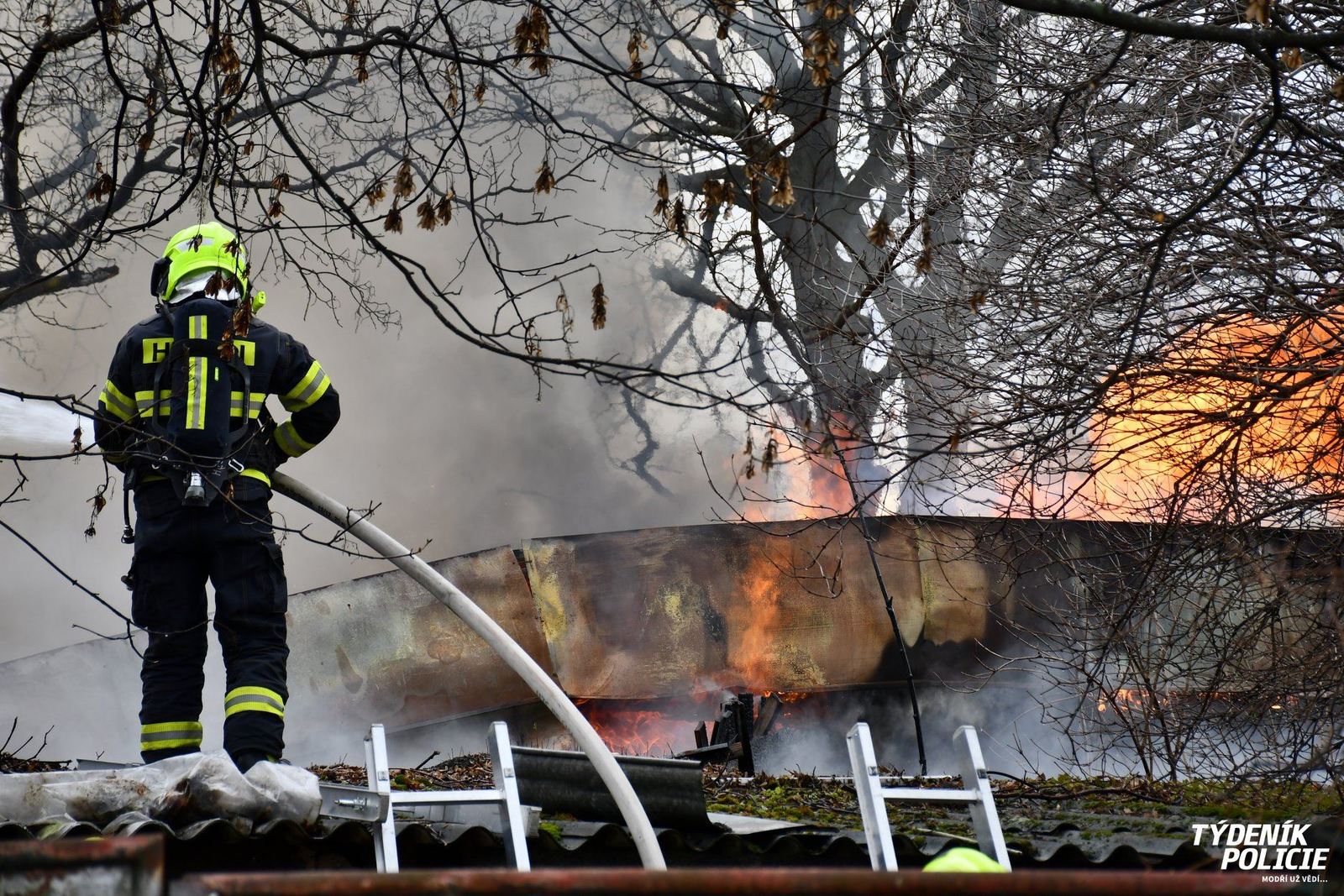Sedm minut před 14. hodinou byl jednotce vyhlášen poplach k požáru bývalých fotbalových šaten do ulice Skokanská, poblíž parku Ladronka. Při našem příjezdu již na místě události zasahovali profesionální hasiči. Působili jsme jako záloha pro případ potřeby.
